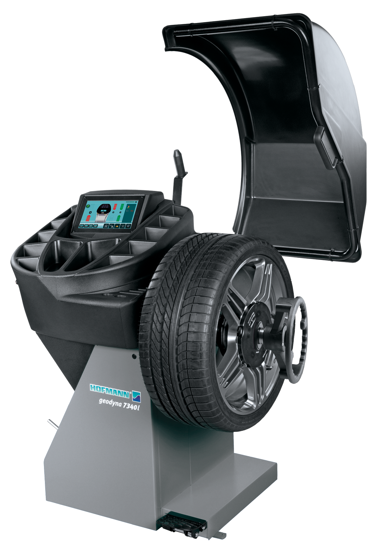 Балансировочный стенд оснащён зажимным устройством Power Clamp™ и функцией easyWEIGHT™ с точечным лазерным указателем. Стенд предназначен для шинных центров, дилерских и общих СТО со средним объёмом обслуживания. Cенсорный графический дисплей geoTOUCH™ делает балансировочный стенд geodyna® 7340 таким же интуитивным, как и стенды с сенсорным монитором.