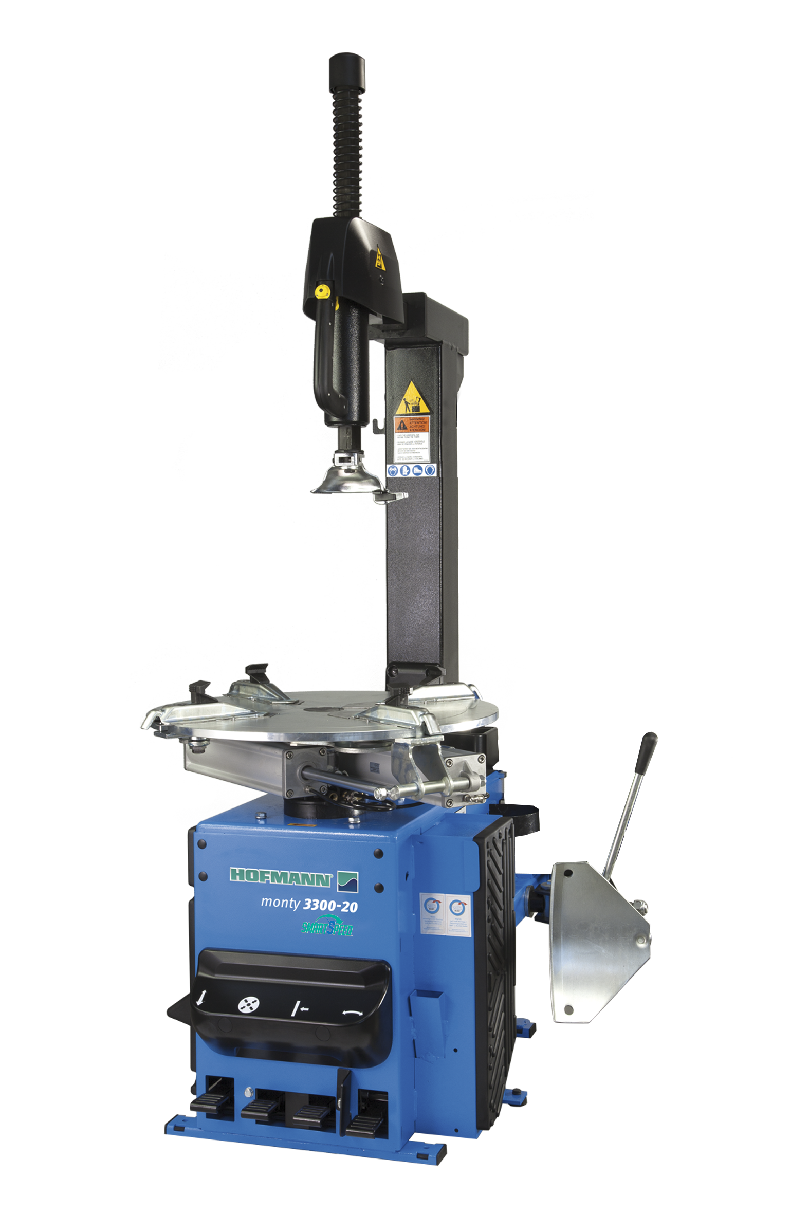 Шиномонтажный станок для СТО и дилерских шинных магазинов с малым объёмом обслуживания - с пневматически отклоняемой монтажной стойкой, с малой занимаемой площадью, диапазоном зажима снаружи 20"; с устройством взрывной накачки.
