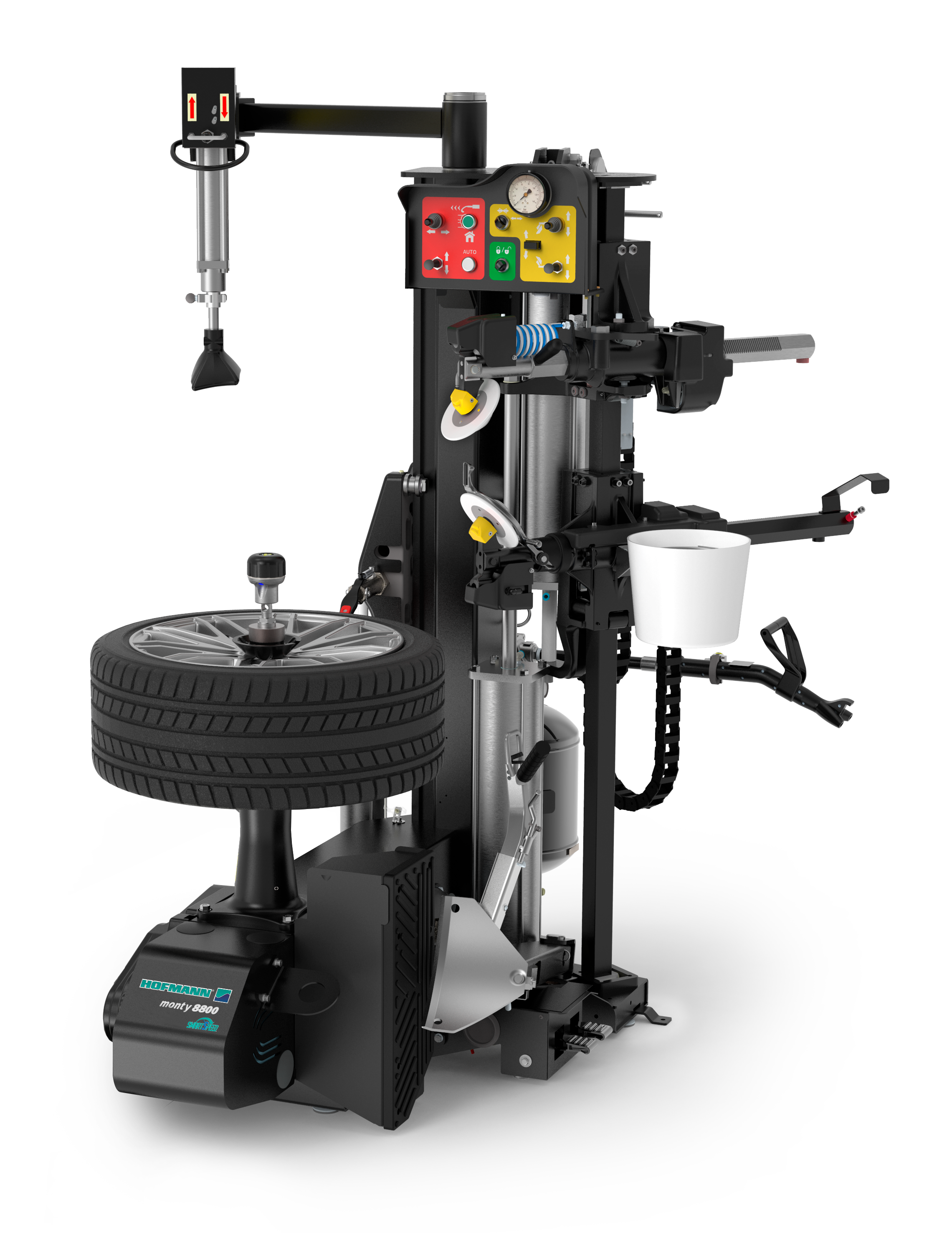 monty® 8800p smartSpeed™, сочетает высокую производительность станков с монтажным столом с высокими свойствами станков с центральным зажимным фланцем и роликовым отжимным устройством. Напольный отбортовщик, беспроводное управление с ручки вала, комплект взрывной накачки, подъемник колеса и камера для наблюдения за операциями на нижнем борту шины. Сертифицирован WDK.