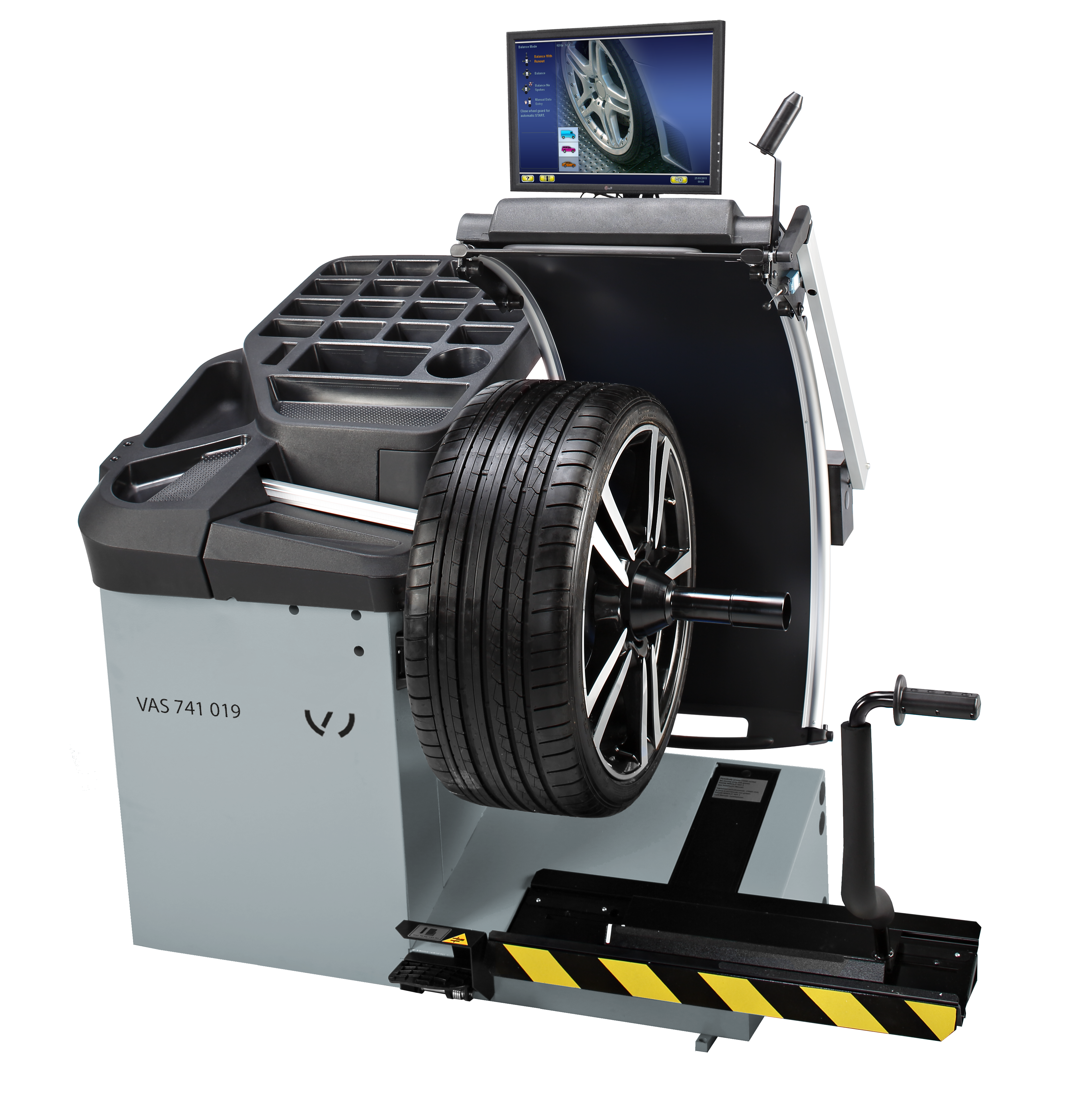 Модерный подъёмник колеса обеспечивает лёгкую и быструю работу с колёсами массой до 70 кг. Колесо автоматически поднимается на высоту, использованную при последней балансировке, а затем платформа автоматически опускается в исходное положение. Это снижает время полного цикла «с пола на пол».